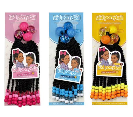 Kids Ponytail Extension Girls Braids Hair Extensions with Beads. Hair Extension Braid Synthetic Hairpieces with Bows Beaded Braided Clip.