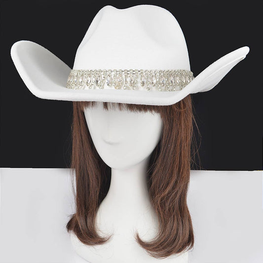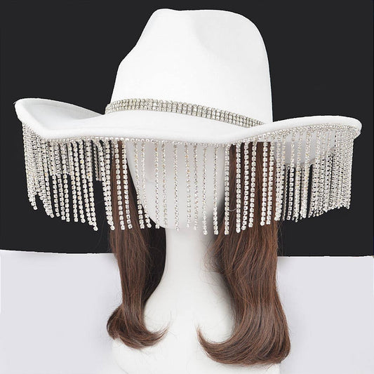 3AM BY H&D ACCESSORIES - Fringe Rhinestone Faux Wool Cowboy Hat