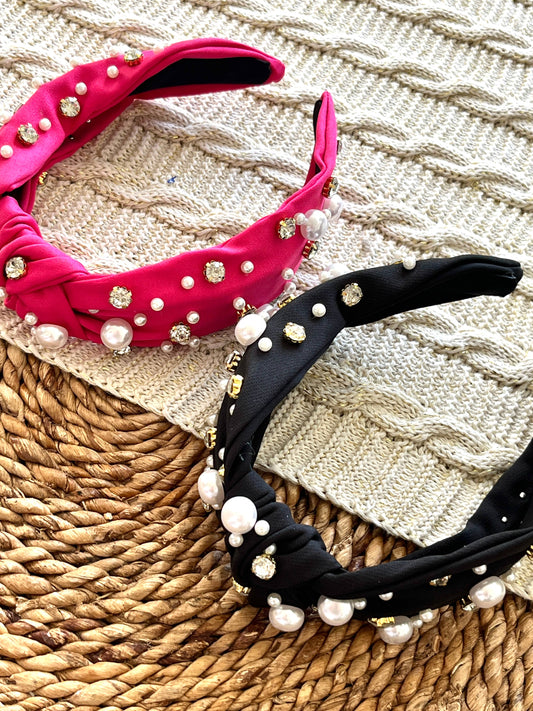 Frosting Company - Knotted Headband Pink Black Faux Pearl - Spring Easter