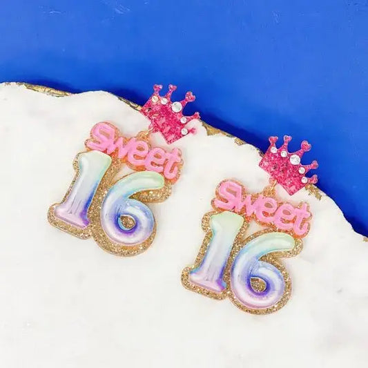 ‘Sweet 16' Birthday Balloon Dangle Earrings