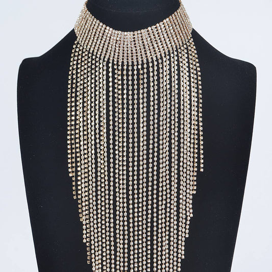 3AM BY H&D ACCESSORIES - Rhinestone Choker Tassle Necklace
