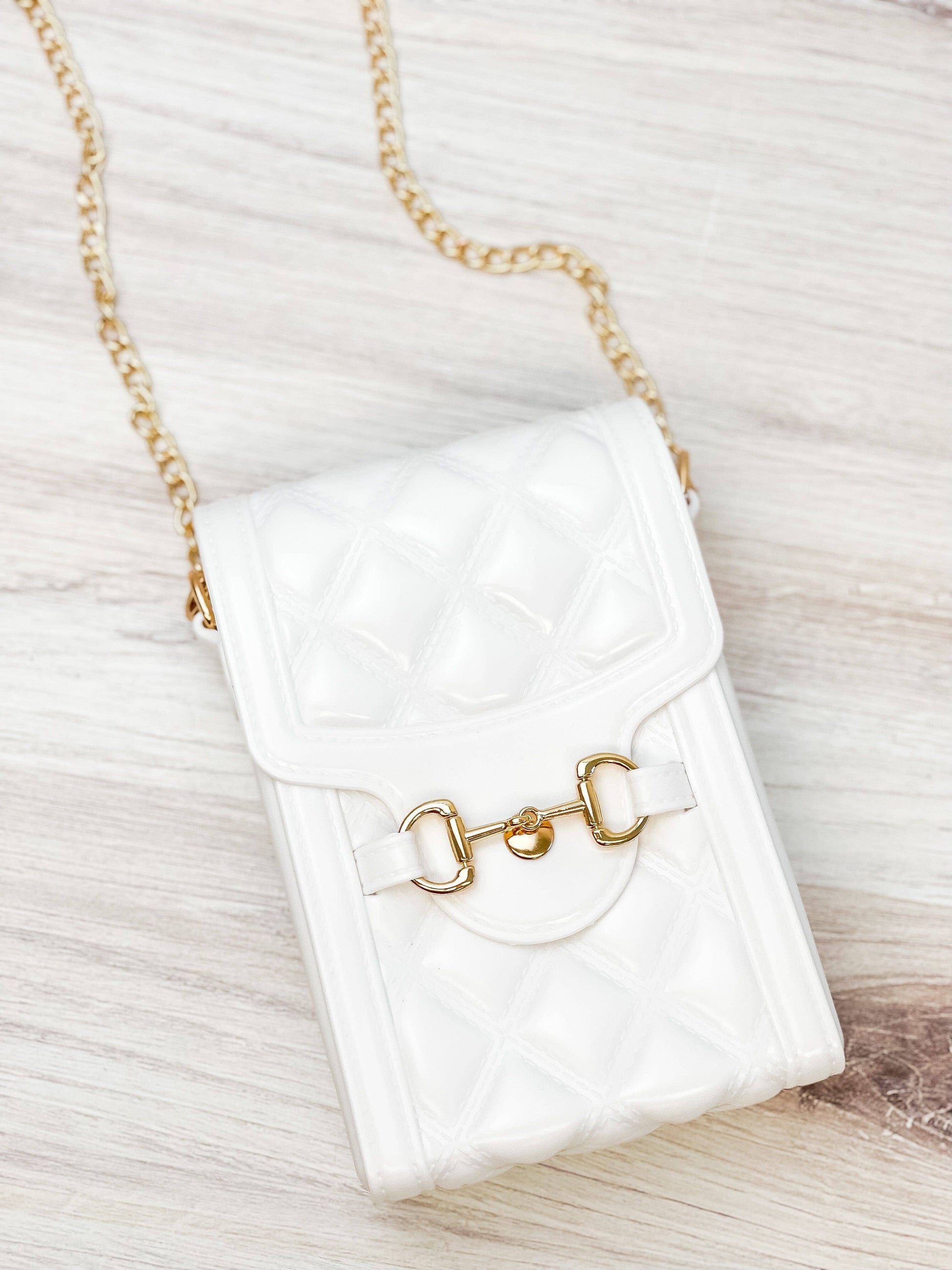 The cutest jelly quilted purse with the perfect chain link strap! Great for a Summer look!